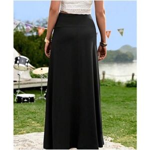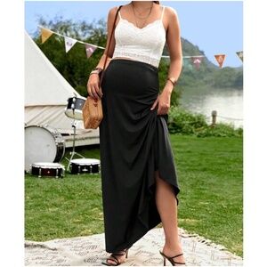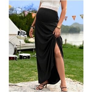 Maternity Black Stretchy Flared Hem Solid Maxi Skirt