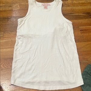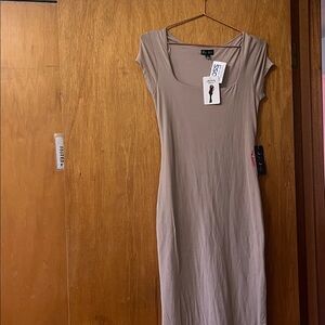 Bundle of three maternity items. All size small. Green tank top (also nursing), white tank top with built in bra liner, and beautiful nwt tan dress.