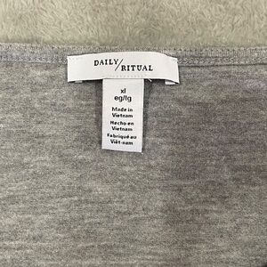 * Daily Ritual light gray top. This is a long top, perfect for the third trimester. It’s buttery soft material- made of 95% Rayon and 5% Spandex.