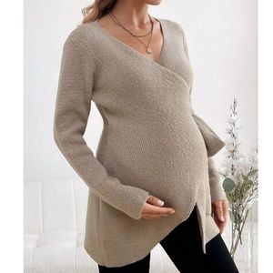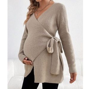 Maternity Burgundy Comfy Wrap Tie Sweater Top