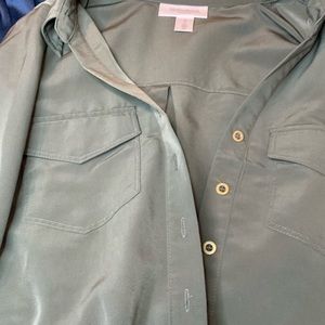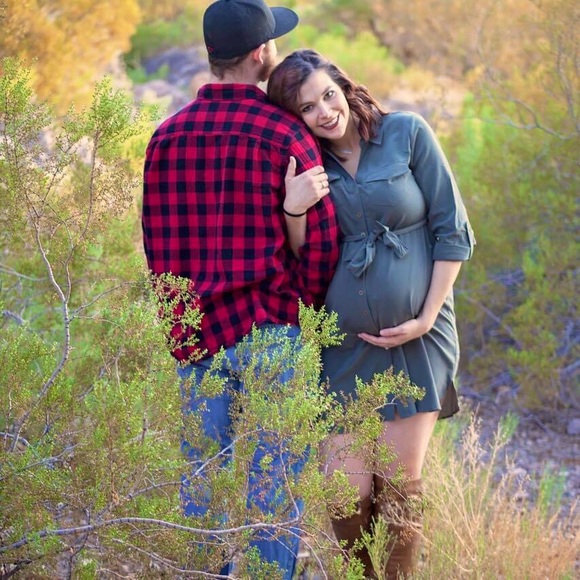 Olive green button down maternity dress with front tie. Good condition. Wore once. Smoke free environment.