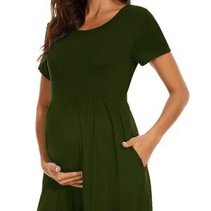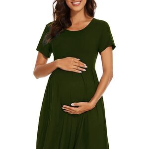 Scoop neck, Basic T-shirt, Classic maternity dress. This maternity dress is an easy go to for the summer months and warm weather. Very comfortable and breathable.