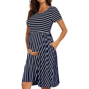 Scoop neck, Basic T-shirt, Classic maternity dress. This maternity dress is an easy go to for the summer months and warm weather. Very comfortable and breathable.