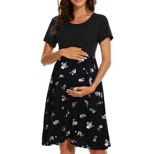 Scoop neck, Basic T-shirt, Classic maternity dress. This maternity dress is an easy go to for the summer months and warm weather. Very comfortable and breathable. 93% Rayon,7% Spandex