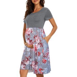 Scoop neck, Basic T-shirt, Classic maternity dress. This maternity dress is an easy go to for the summer months and warm weather. Very comfortable and breathable.