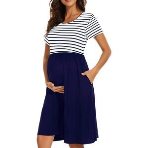 Scoop neck, Basic T-shirt, Classic maternity dress. This maternity dress is an easy go to for the summer months and warm weather. Very comfortable and breathable.
