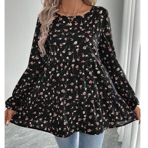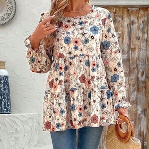Maternity Floral Print Round Neck Long Sleeve Blouse