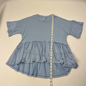 Maternity Hi-Lo Short Sleeve Shirt Blue Peplum Baby Shower Gender Reveal Small