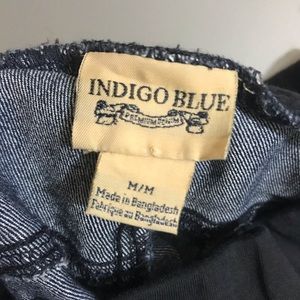 Dark wash blue denim pants.