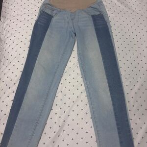 One blue jeans from Jessica Simpson in size S/P and one golden brown maternity Jeans in size M with full tummy panel