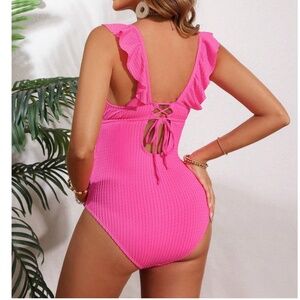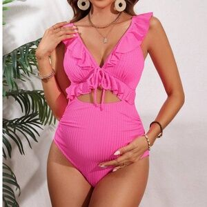 Maternity Lace up Cut out Ruffle Ribbed One Piece Monokini Swimsuit