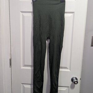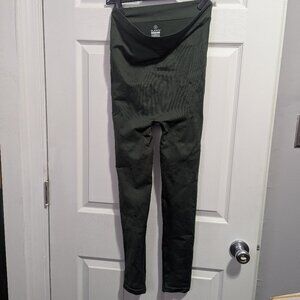 3 pairs of Blanqi Maternity Leggings in green, red, and blue.