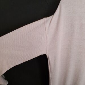This Gap Maternity Midi Sweater Dress in pink, size M, is a stylish and comfortable option for expecting mothers. With a V-neckline, long sleeves, and a pullover closure, it provides both practicality and style. The midi dress length falls to the knee, making it perfect for cooler seasons like winter, fall, and spring. Made with a solid pink color, this basic sleeve type sweater dress is a versatile addition to any woman's wardrobe, offering both coziness and a flattering silhouette.