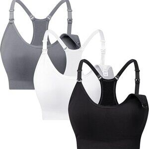 Maternity & Nursing Sports Bra Set of 3 - black, white, and gray