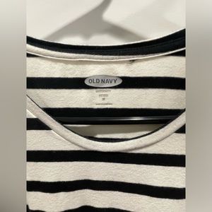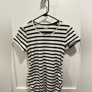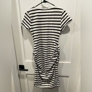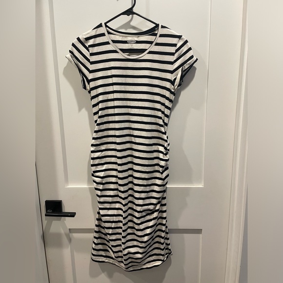 Old Navy maternity dress. Short sleeve black and white stripe. Gathered on sides to grow with you through pregnancy.