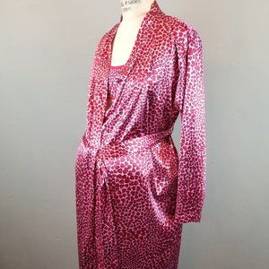 Maternity Pink & Red Hearts Satin 4pc Lounge Wear Pajama Set by Belly Basics Size Small * Brand New with Tags