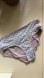Stylish polka dot maternity bikini bottoms. The top band is loose and able to be pulled up over your baby bump or rolled over to sit below your belly. Black dots on an off white background.