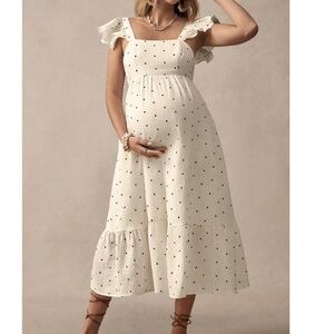 Maternity Polka Dot Ruffle Sleeve Tie Back High Waisted Dress