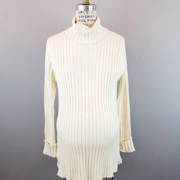 Maternity Ribbed L/S Cream Turtleneck Sweater by Belly Basics Size Small NEW
