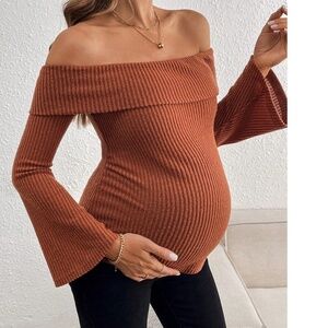 Maternity Ribbed Off Shoulder Flare Long Sleeve Top