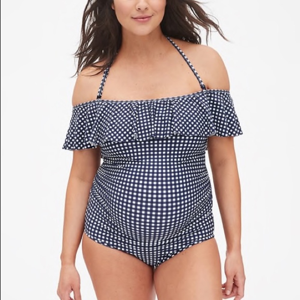 Maternity Ruffle Off Shoulder Gingham Swimsuit