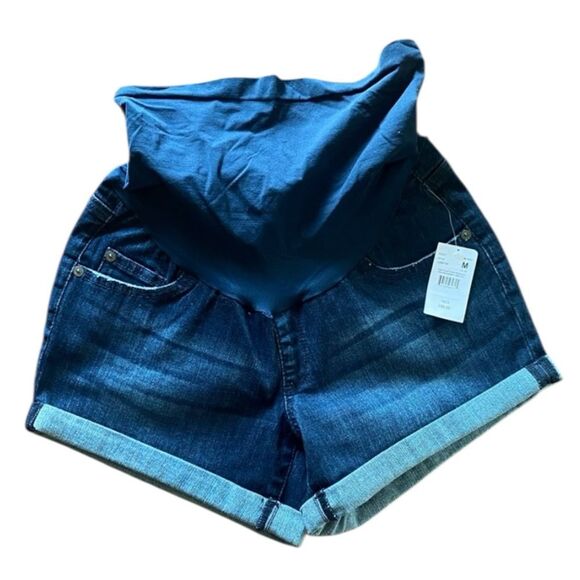 Maternity Shorts denim rolled hem belly panel dark blue Size Medium