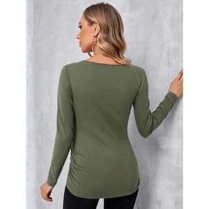 Maternity Solid Nursing v neck long sleeve Tee tie front black