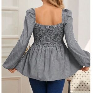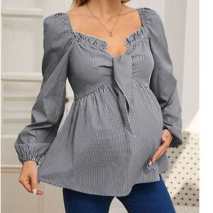 Maternity Stripes Ruffle Detail Long Sleeve Peplum Blouse