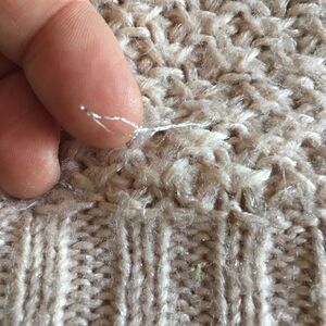 Crafted with care, this sweater offers a cozy haven for you and your growing bump. The fuzzy stitches add a touch of texture, while two small pulled silver strands, a non-issue for functionality, contribute to its unique charm.