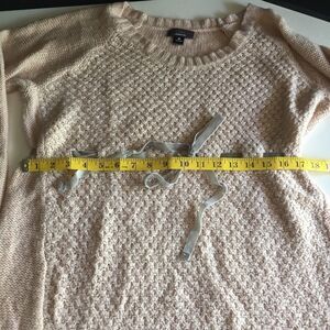 Rest assured, this item has been stored in a pet-friendly and smoke-free home, preserving its quality. Elevate your maternity wardrobe with this delightful pink sweater that combines practicality with a touch of elegance. Experience maternity fashion that adapts to your changing needs.