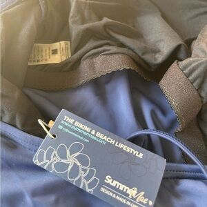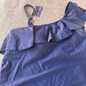 Maternity Swimwear One Shoulder Flounce One Piece, Navy Size Medium