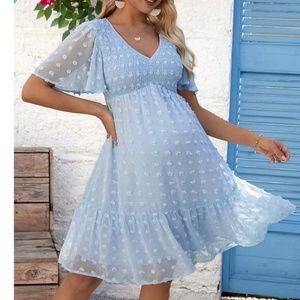 Maternity Swiss Dot Butterfly Sleeve Ruffle Mini Dress