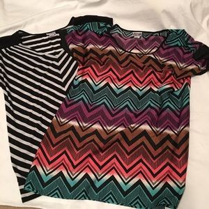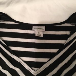 Motherhood Maternity - Bundle of 2 size Medium tops - the multi colored one originally had a belt which is why their are numbers on the tag! Is super cute, and I would never have worn it that way anyways. It is really cute on. The black and white top has a sheer panel in the top of the shoulder. Let me know if you need more pics. These pictures do not do these justice! In excellent condition!