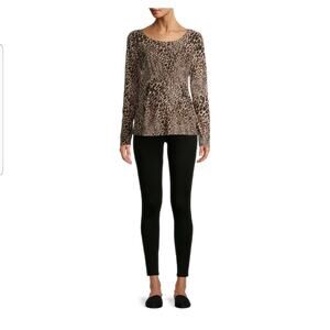 New Maternity Blouse, lightweight long sleeve Tee Shirt with smocking for full flowing style. Very comfy. Animal print, leopard,  stretch, 92% poly 8% spandex. Size chart in photo.