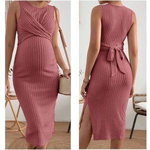 Maternity Twisted Knit Sleeveless Side Slit Midi Dress