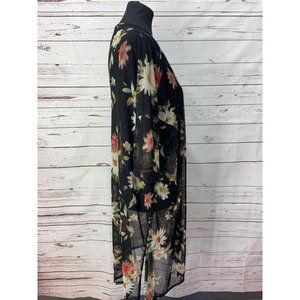 Maternity Vibes Black Floral Print Sheer Long Cardigan Coverup Size Small