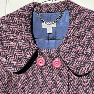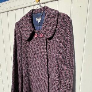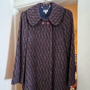 A Pea in Pod wool blend maternity winter coat. Single closure at the top. I used to have my kids in a front carrier and still able to wrap the coat around them, so great wear even after the children were born. Recently dry cleaned. Lining professional repaired. Previously worn through 2 pregnancies, but in great condition.