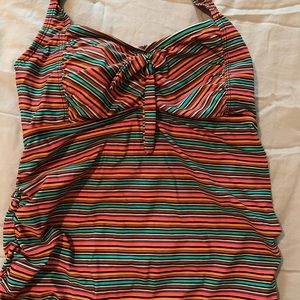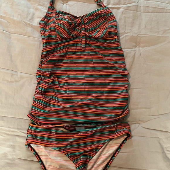 motherhood maternity 2 piece with tankini size Small. Coral and teal colored stripes. Very comfy!