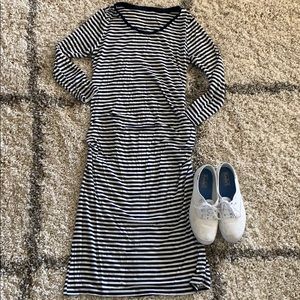 Soft and stretchy fabric super comfy for the mommy on the go. 40” length 3/4 sleeves.