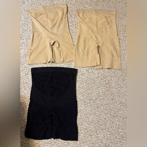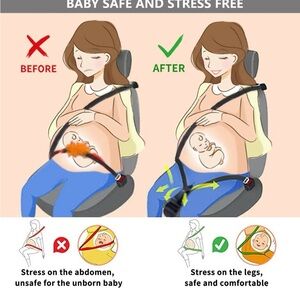 Two seat belt bump straps. Used to allow for safer car travel for a pregnant woman readjusting the belly strap around the legs.