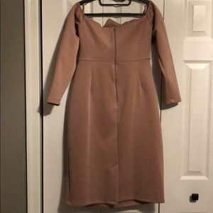 Blush colored origami maternity dress. Off the shoulder style. Zippered back. Material has stretch to it. Worn 1x. Like new condition.