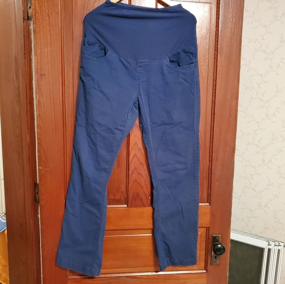Navy blue maternity pants, great for work, with all functional pockets! Straight leg, comfortable, good condition. Tag inside is missing, but they fit me as an 8/10.