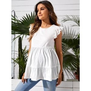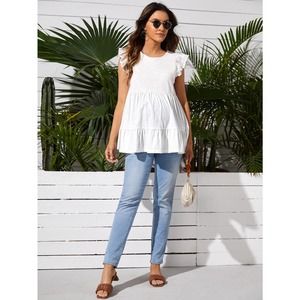 Maternity short Sleeve Ruffle Hem peplum Tee white boho