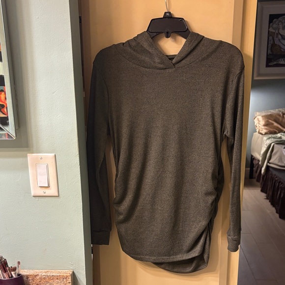 Heather grey ruched sides for expansion Hooded. Lightweight Excellent condition