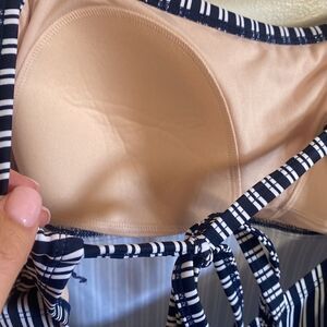 Maternity swimsuit top, navy and white striped adjustable straps. Size XXL