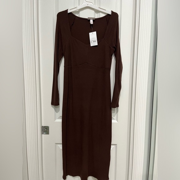 Maternity knit brown dress, long sleeves.