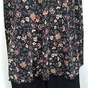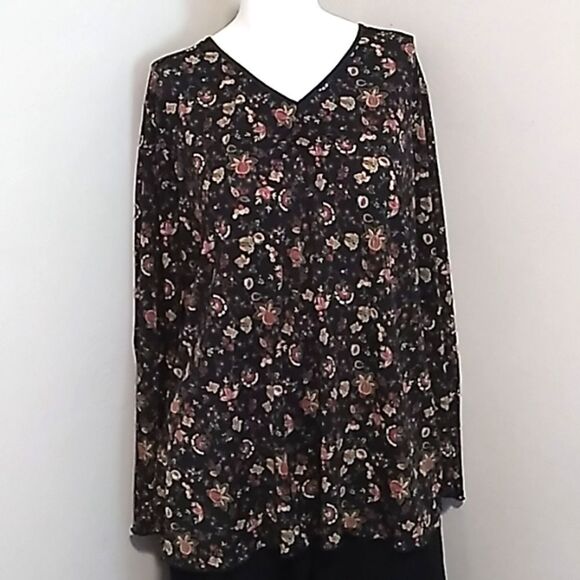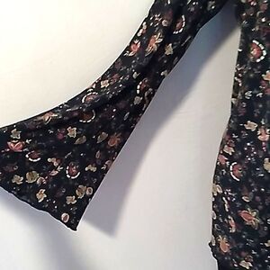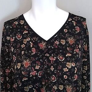 Beautiful black blouse with multicolored floral pattern. Black, bergandy, gray, white and tan.