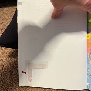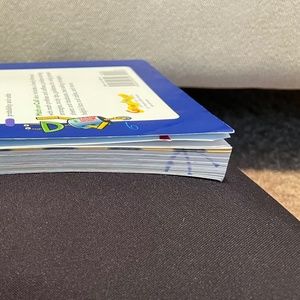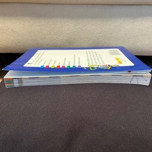 Almost new condition - last 5 pics show blemishes: 1) a red mark, 2 and 3) left over adhesive - all on last page of book and back cover., 4) barely visible edging wear, 5) Marker lines on side of book