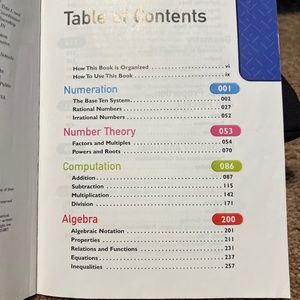 Contains: "Math definitions, procedures, and rules... Numerous examples with detailed explanations...Easy-to-follow charts, tables, and lists...Tips for studying, taking tests, and problem-solving." Has a glossary of mathematical formulas and terms