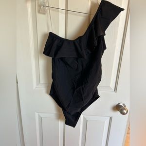 One shoulder, ruffle detail, built in bra.